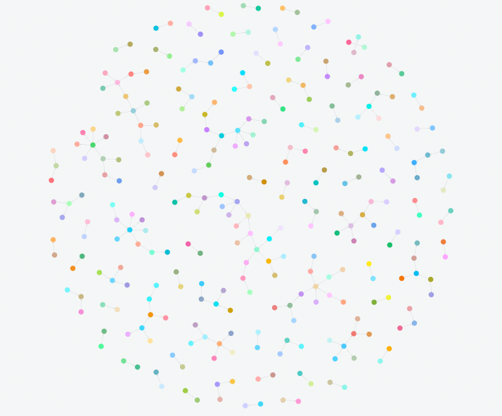 You are going to look at a subset of our graph here (200 nodes). The code to run this will be very similar to what is necessary to construct a graph. You need a dataframe of nodes and a dataframe of edges. Because you are only looking at a subset, the graph will be mostly disconnected.