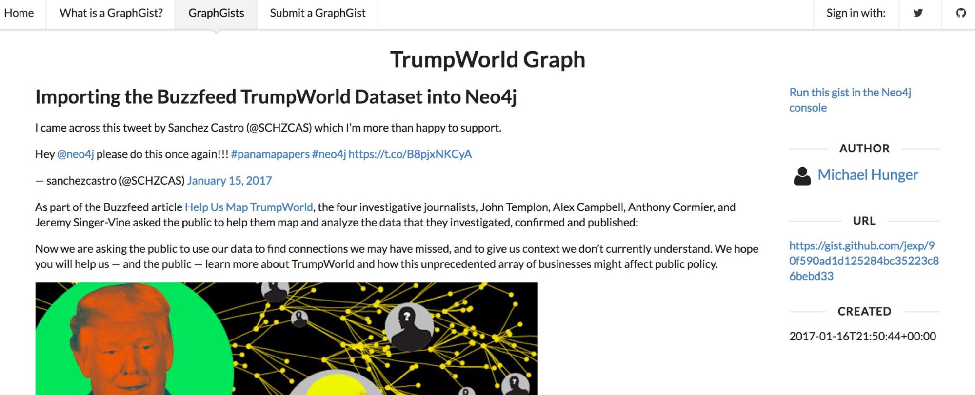 Keywords: BuzzFeed cypher data journalism Donald Trump graph database icij investigative journalism neo4j Panama Papers TrumpWorld Vladimir Putin