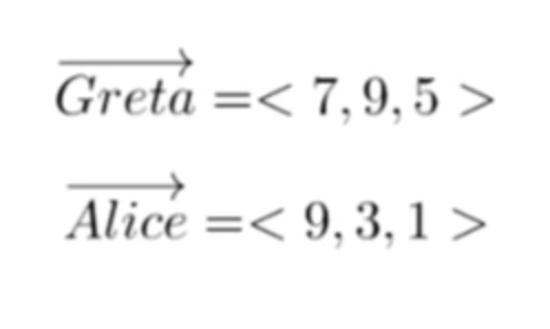 This allows us to find other similar users, like in the example of Greta and Alice. We’ve queried the places they’ve mutually liked, and for each of those places, we can see the weights they have assigned. Presumably, we can use these numbers to determine how similar they are to each other: